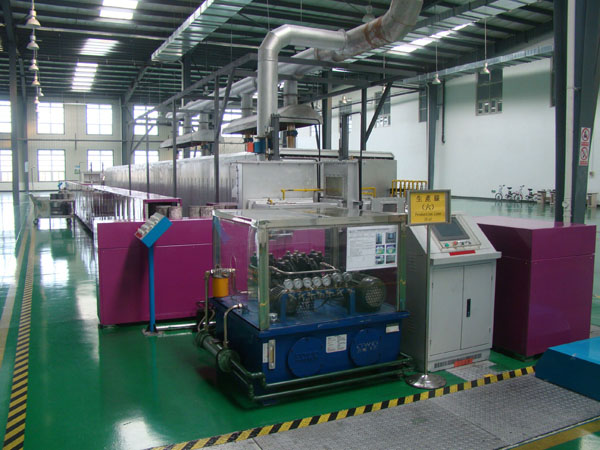 四、主要技術(shù)指標(biāo)要求 4.1爐膛尺寸:25000×720×290(含推板厚度) (L×W×H)mm(雙推板)。 4.2窯口有效尺寸:680mm×210mm(W×H) 4.3設(shè)備尺寸:31000mm×5500mm×2500mm(L×W×H)(參考值)。 4.4最高溫度:1300℃。 4.5常用溫度:1200℃。 4.6額定功率:320KW 4.7供電能力:≥350 KW 4.6控溫組數(shù):見溫度曲線 4.7爐溫穩(wěn)定度:±3℃/24h。 4.8恒溫區(qū)有效截面溫差:±5℃。 4.9爐體表面溫升:≤45℃。 4.10推進速度:500-2500mm/h。 4.11窯內(nèi)含氧量:最高工作溫度空窯時,在升溫區(qū)、恒溫區(qū)、降溫區(qū),三個測氧點平均≤80ppm+氣源氧含量。 4.12出口溫度:≤100℃。