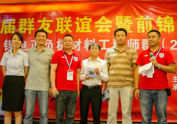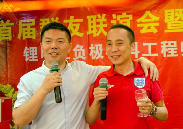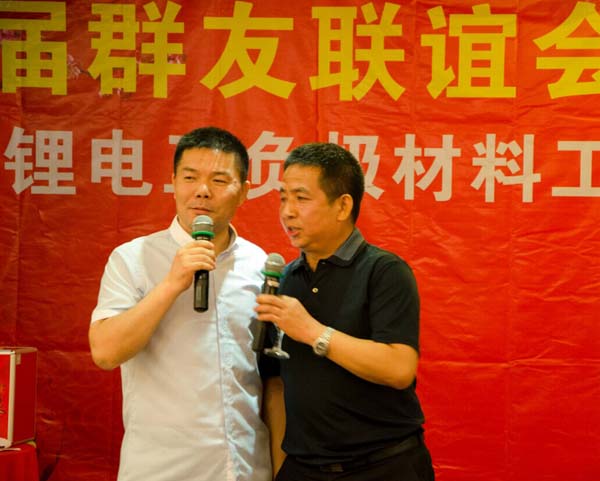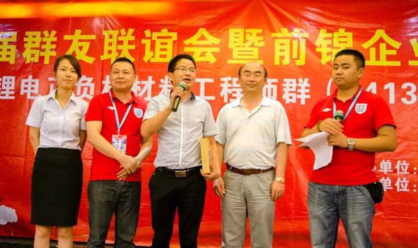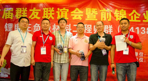 | 2014年6月19日晚18:30首屆鋰電正負(fù)極材料工程師群( 241388010)群友聯(lián)誼會(huì)暨前錦企業(yè)答謝會(huì)在深圳楚天大酒店龍鳳廳順利召開(kāi)。鋰電正負(fù)極材料工程師群建立于2013年4月份,群主由江蘇前錦爐業(yè)劉俊擔(dān)任,截止2014年6月份共加入658名群友,報(bào)名參加聚會(huì)人數(shù)112人,實(shí)際聚會(huì)到場(chǎng)人數(shù)136人,這一次聚會(huì)匯集了以中南大學(xué)胡國(guó)榮老師、有色院劉博士、重慶材料研究院唐老師等為代表的科研界嘉賓們和廣州國(guó)光電子、湖南匯博、河南科隆、寧波艾能、江西江特鋰電、廣鋼集團(tuán)、天驕集團(tuán)、中信國(guó)安、江門(mén)科恒、四川興能、廈門(mén)首能等企業(yè)代表們以及不遠(yuǎn)千里從各地趕來(lái)的群友們。