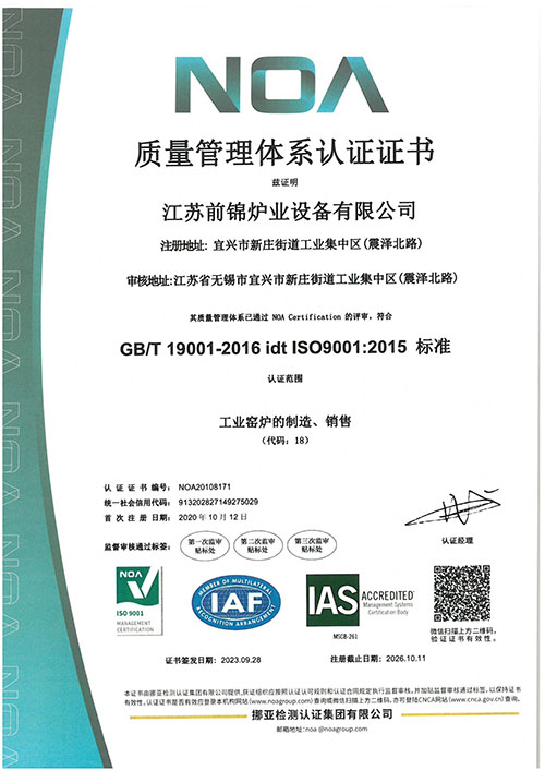 質(zhì)量管理體系認(rèn)證證書